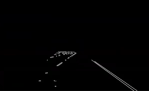 调高下边缘与上边缘,可以有效减小噪点数量。而车道线在灰度后,有非常强的边缘(黑与白),所以保持较高的阈值是方便的。